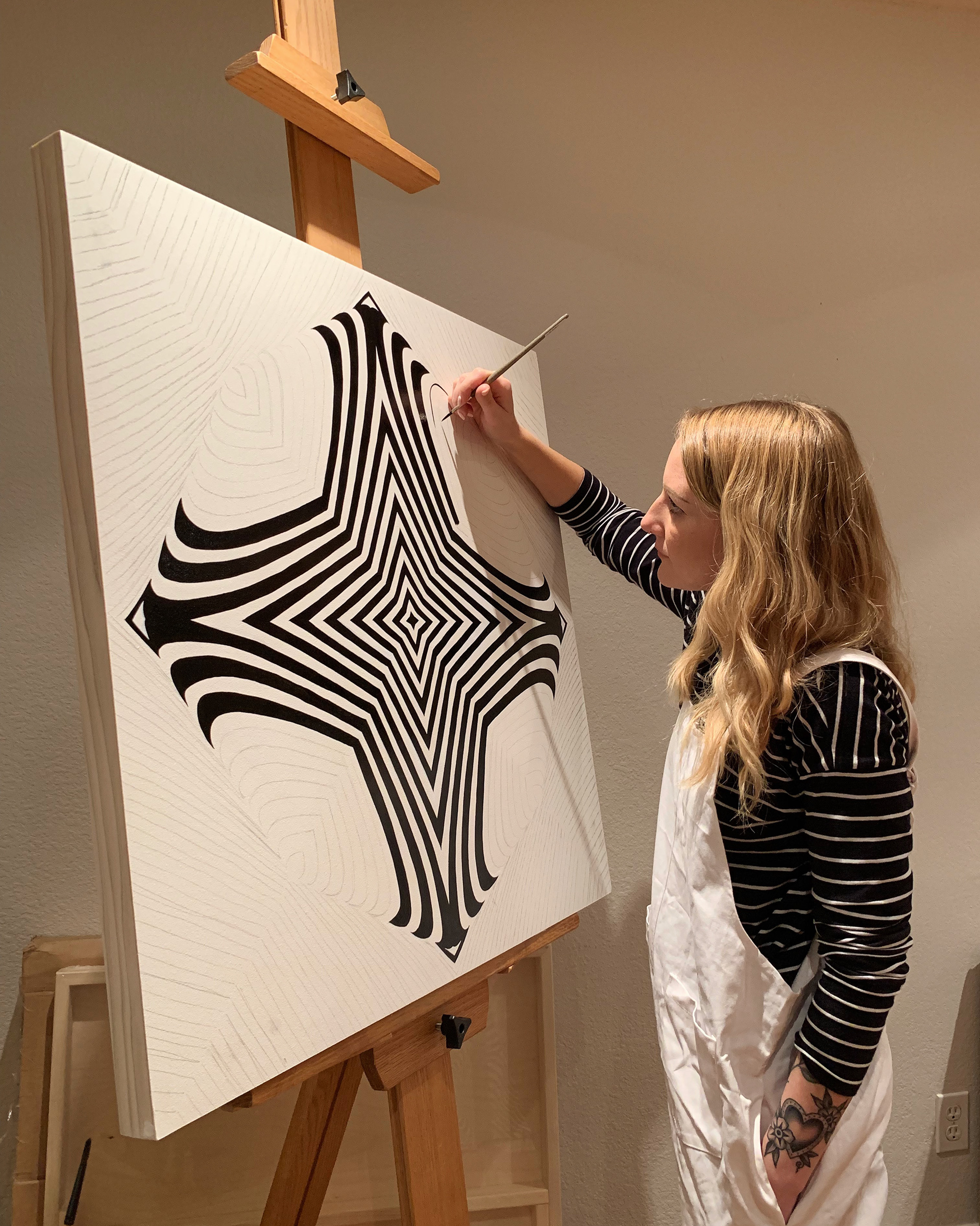 In my spare time I create meditative pattern paintings utilizing chance.